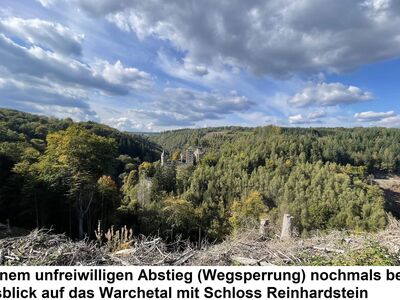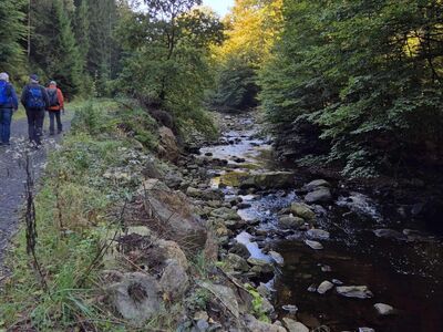 Am letzten Tag ging es ins Tal der weißen Elster. Leider versperrten uns einige umgestürzte Bäume den Weg. Wir mussten uns schon sehr anstrengen über die Wurzeln und Äste hinwegzukommen. Aber auch das schafften wir und kamen so zur Ruine Liebau, anschließend in den Kleppergrund, immer am Fischbach entlang, nach Ruppertsgrün. Von da war es nicht mehr weit bis ins Quartier „Zum Gockeschen Hahn“.