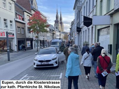 Am Anreisetag stand zunächst ein Besuch von Eupen, der Hauptstadt Ostbelgiens, mit einer Stadtführung auf dem Programm. Neben der Geschichte der Region erfuhren wir von einer historischen Verbindung zu unserer Waldstadt durch die einst auch in Eupen ansässige Unternehmerfamilie von Scheibler.