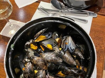Zum Abschiedsabend dann ein belgischen Nationalessen: Moules frites.
