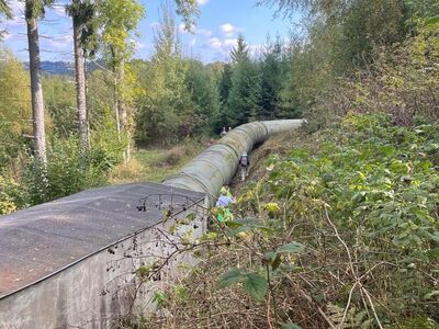 Pünktlich zur ersten Wanderung hörte es auf zu regnen. Der Himmel war noch wolkenverhangen, aber das störte uns nicht. Es ging in Richtung Elstertalbrücke, die zweitgrößte Ziegelsteinbrücke der Welt, ins Triebtal. Da die Brücke noch bis Anfang 2025 saniert wird, war sie leider eingerüstet und man darf sie im Moment auch nicht betreten. Die Trieb, Abfluss der Pöhltalsperre, war aufgrund der starken Regenfälle sehr reißend. Ein wunderschöner Weg führt hinauf bis zur Sperrmauer. Wir aber wanderten zum Mosenturm auf dem Eisenberg. Von hier hat man einen kompletten Blick über die Talsperre. Weiter ging es über die Schäferbrücke zum Mosbauer, der leider Ruhetag hatte. Weiter über die Teufelskanzel durch das Nymphental zur Pfaffenmühle. Hier lohnte sich eine Einkehr.