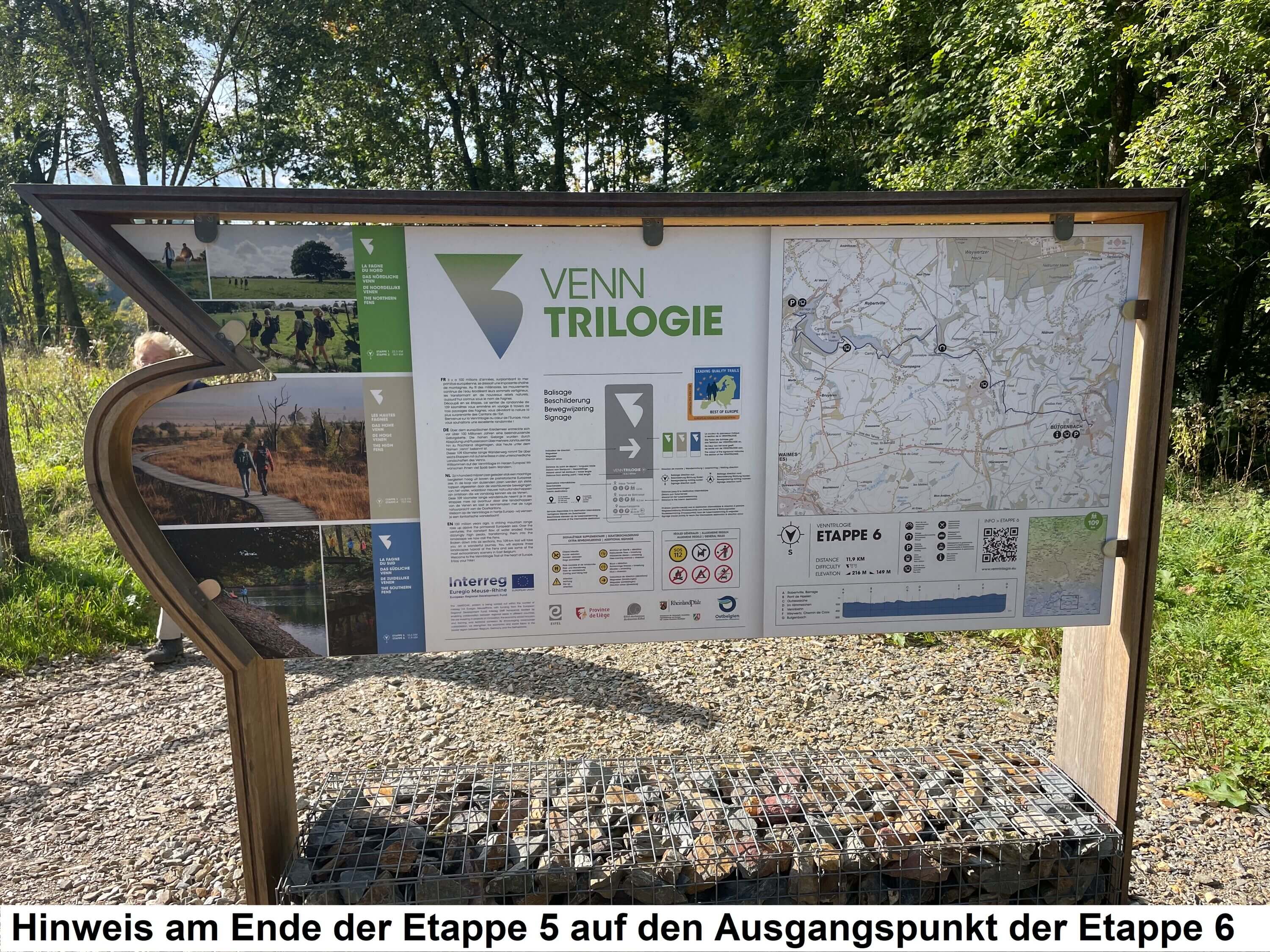 Abgeleitet ist der Wegname aus „Venn“ (geografische Lage der Strecke) und „Trilogie“ (drei Landschaftstypen des Venns: die weiten Wiesenlandschaften im nördlichen Venn, das mystische Hohe Venn und die Wälder und Flusstäler im südlichen Venn). Der Start ist am Dreiländereck Belgien/Deutschland/Niederlande, mit der höchster Erhebung der Niederlande, Vaalserberg 323m, Endziel ist Bütgenbach in Belgien.